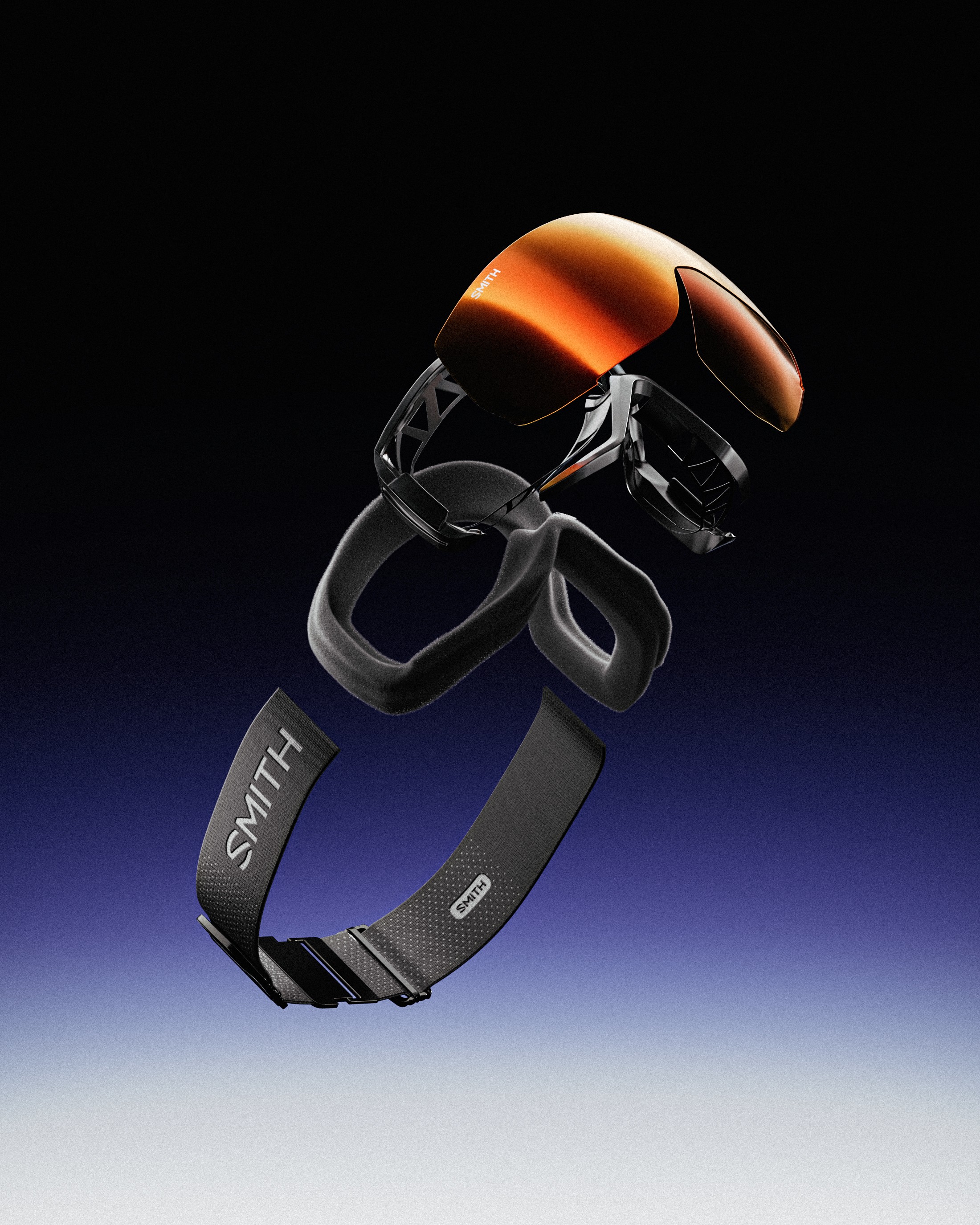 What happens when you remove a sport product from its natural context and treat it as a pure design object. No mountain. No athlete. No action shot. Just the goggle — its mirror lens, its strap, its structure — lit and composed with the same visual rigor applied to luxury goods or industrial design pieces.